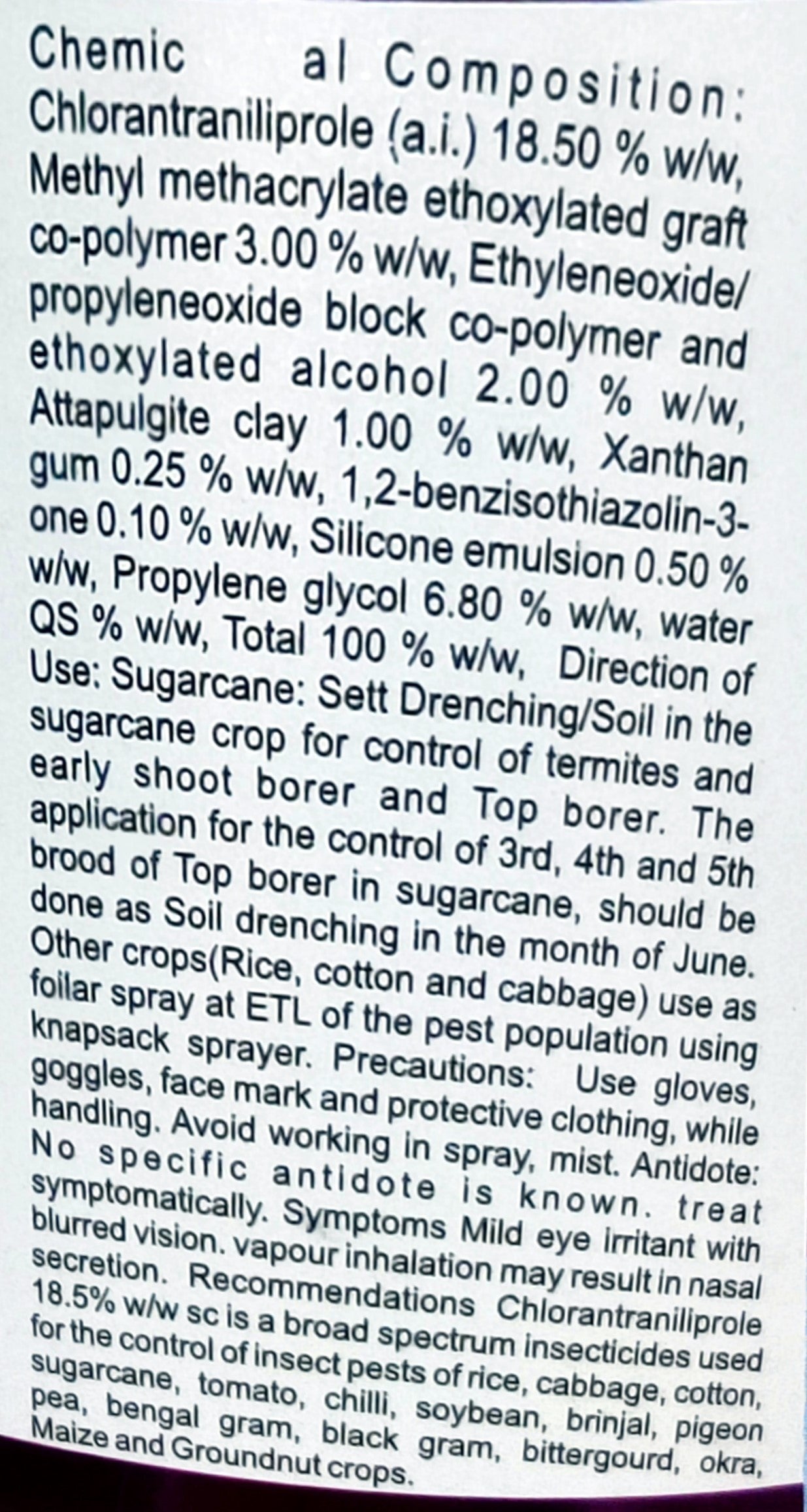 क्लोरएंट्रानिलिप्रोएल 18.5% एससी कीटनाशक का अनुशंसित उपयोग