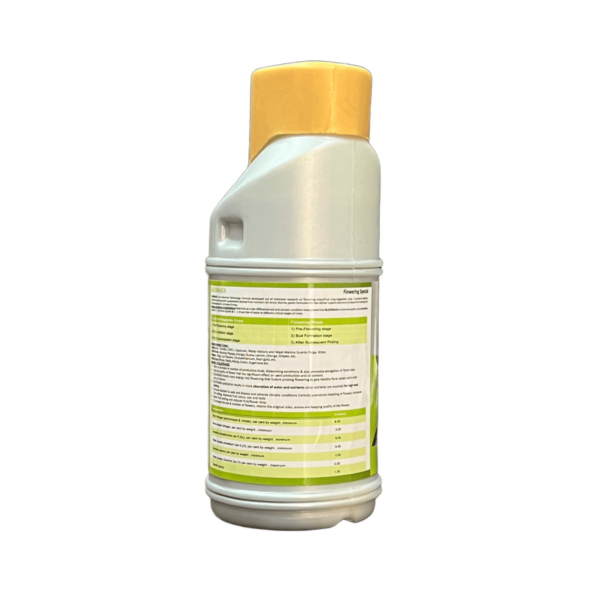 BLOOMAXX is an Advanced Technology Formula developed out of extensive research on flowering crops/fruit crop/vegetable crop. It contains balanced nutrition & active growth supplements derived from nutrient rich Arctic Marine plants formulations that deliver superb yield and increased fruit setting and fruit development in all types of crops.