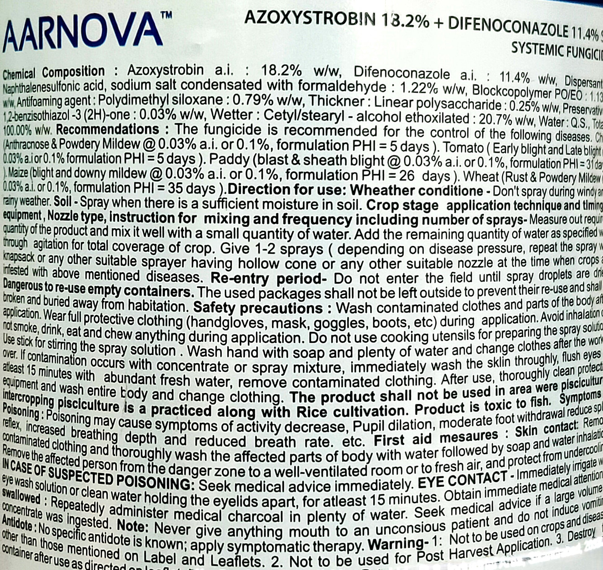 Aarnova (Azoxystrobin 18.2% + Difenoconazole 11.4% SC) Systemic Fungicide